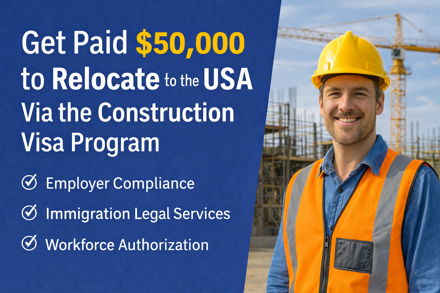 Get Paid $50,000 to Relocate to the USA Via the Construction Visa Program